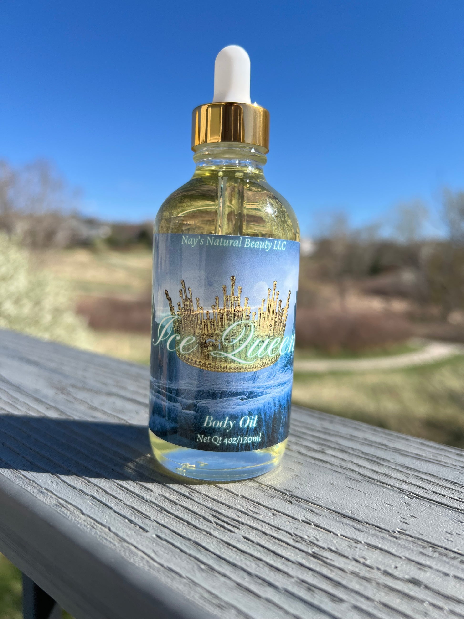 Introducing Ice Queen Body Oil - a luxurious scent blend of fresh rose petals, wisteria, cyclamen, sandalwood, vanilla, and more. Infused with lemon, eucalyptus, mint, lavender, clove, jasmine, cedarwood, snowdrops, and musk for a refreshing and soothing scent. Frost yourself with Ice Queen.