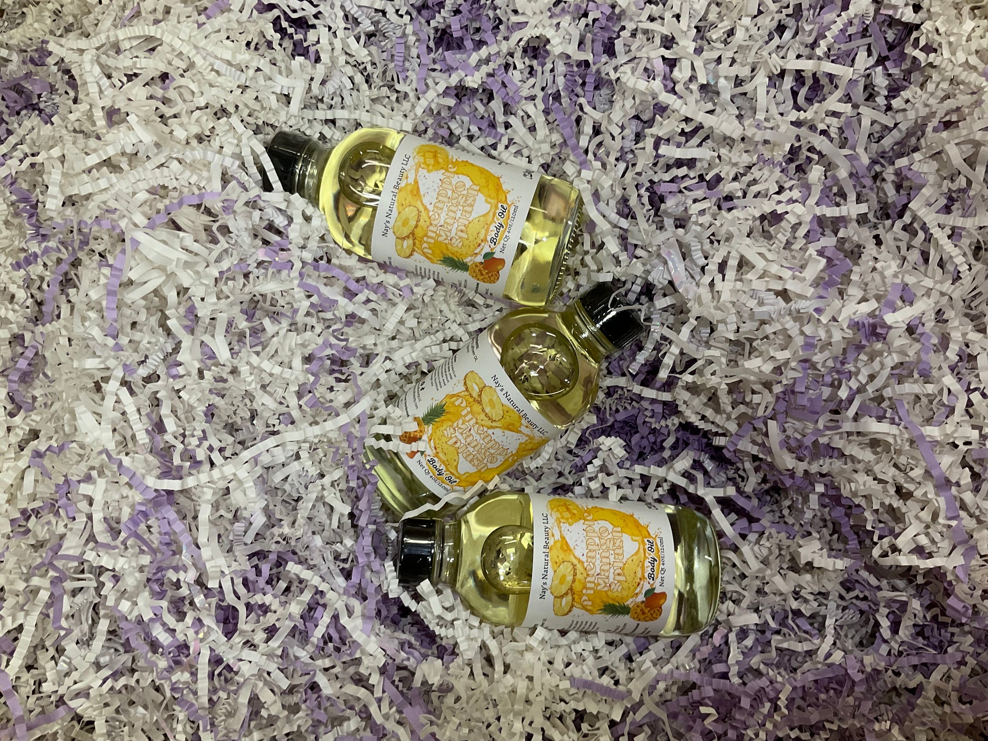 "Experience a tropical escape with our Pineapple Mango Splash Body Oil! Bursting with top notes of pineapple, banana, and mango, this oil will invigorate your senses and transport you to a sun-drenched paradise. Paprika and musk add a spicy kick, while apple woods provide a hint of refreshing sweetness. Embrace adventure and indulge in this bold, exotic fragrance!"