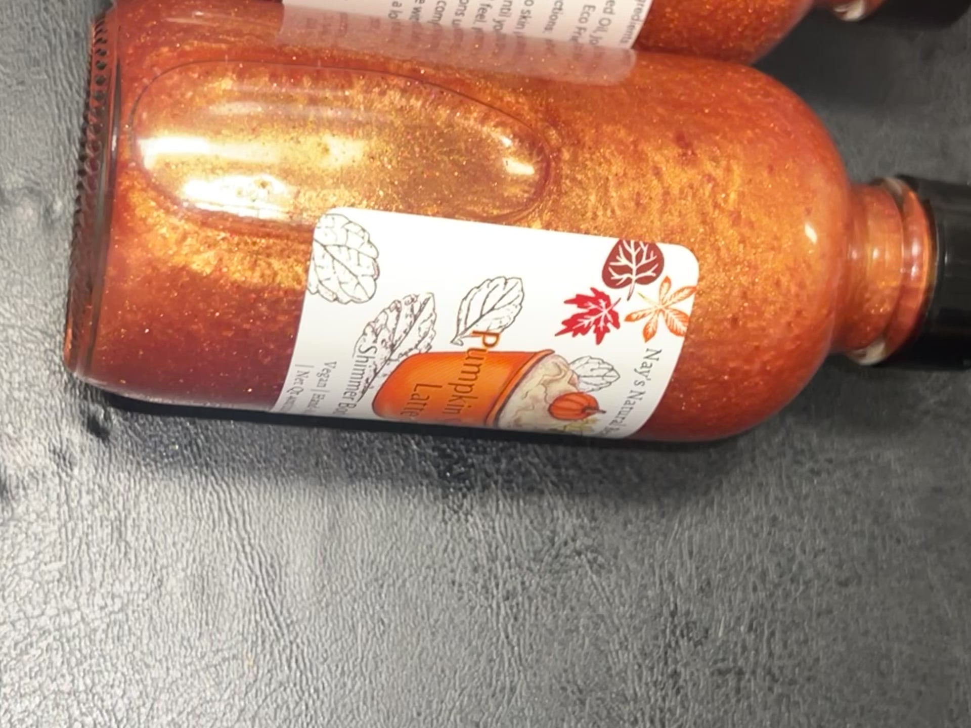 Shimmer Body Oil: Pumpkin Seed Oil, Jojoba Oil, Fragrance, Mica, Eco Friendly Glitter.