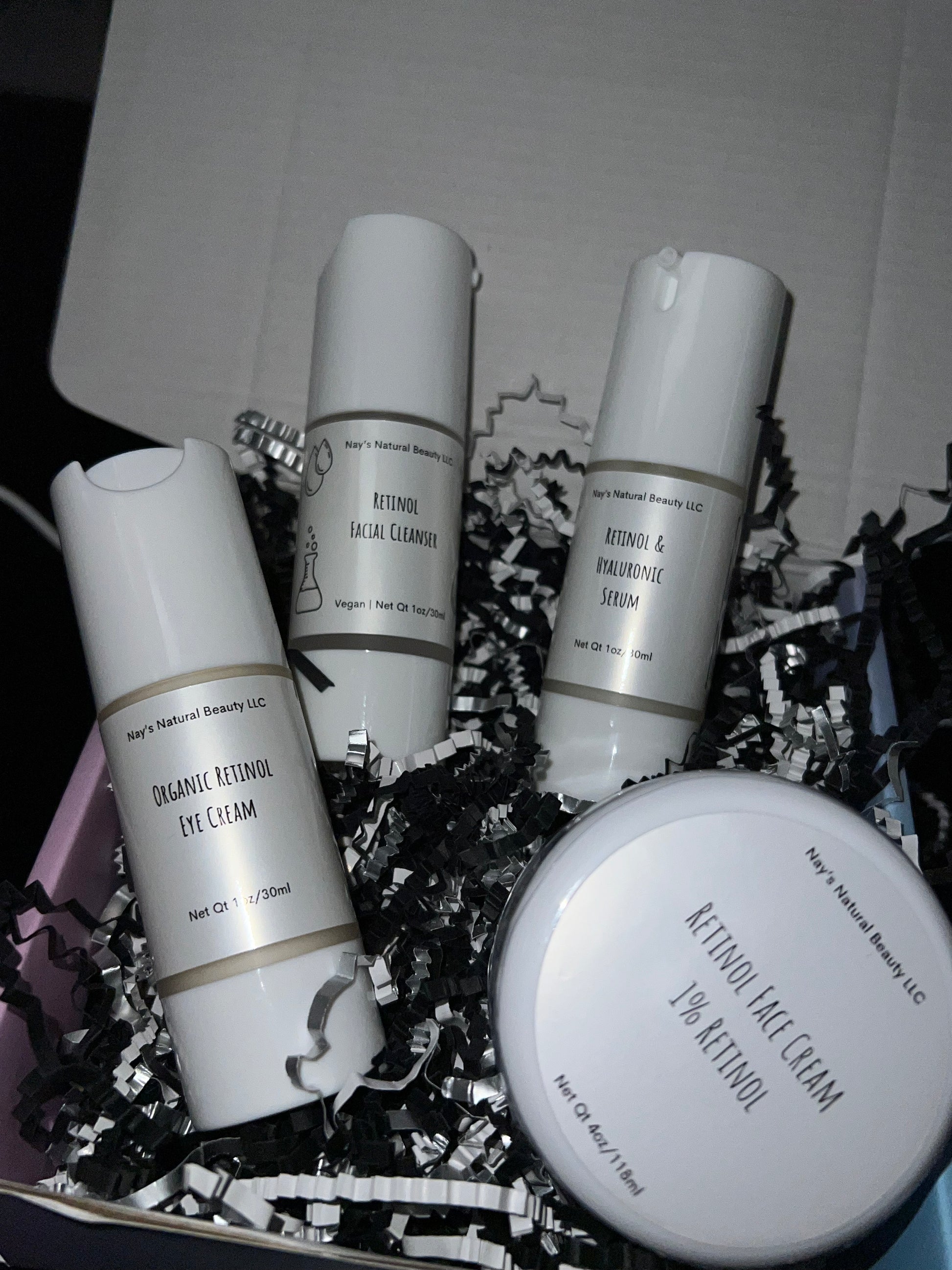 This Retinol line helps increase skin cell production, It helps unclog pores, Retinol also exfoliates your skin and increases collagen production, which can reduce the appearance of fine lines and wrinkles, giving your skin a fresher, plump appearance. This line is best when used for the nighttime routine, and when using retinol products please use Sunscreen as well